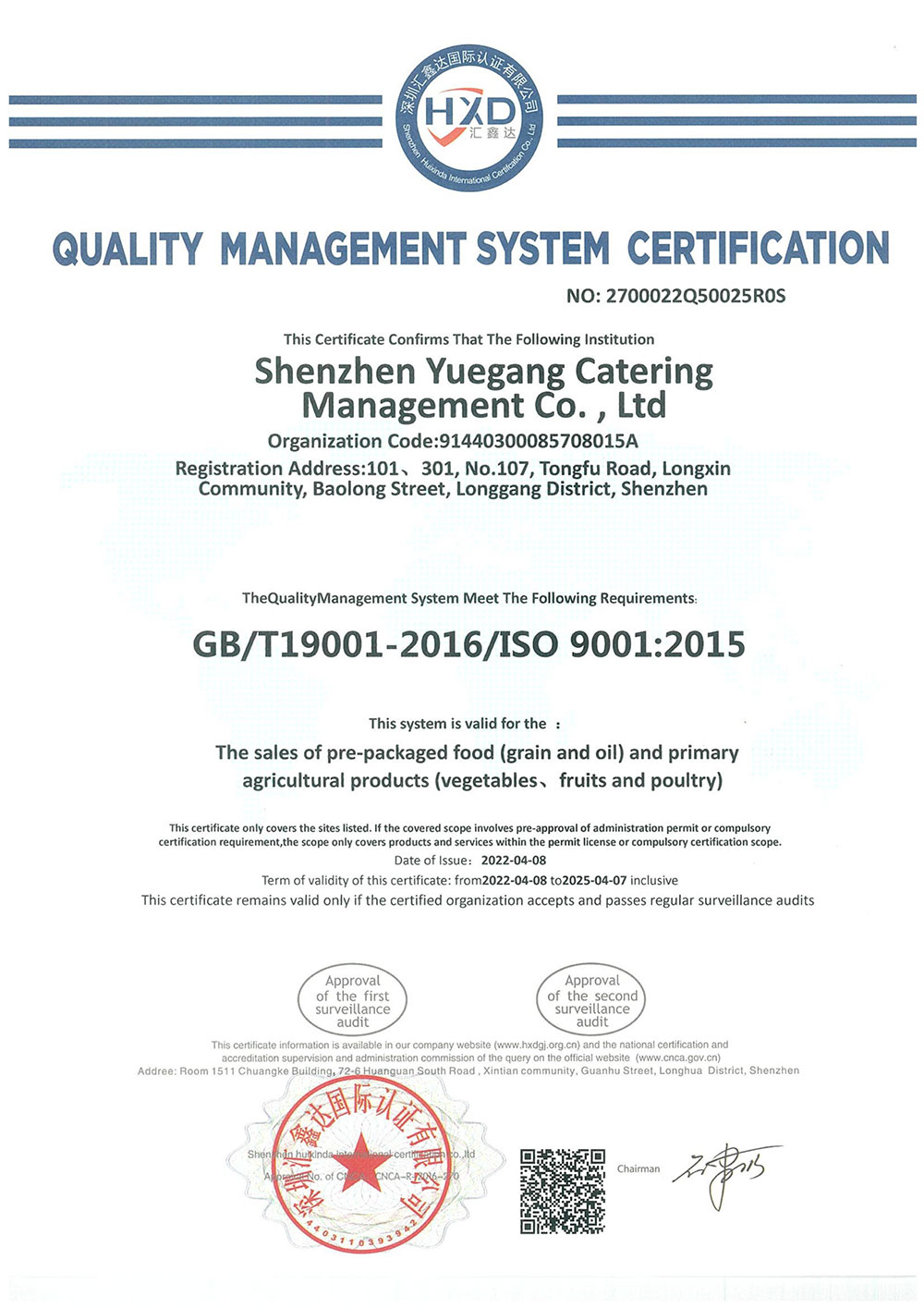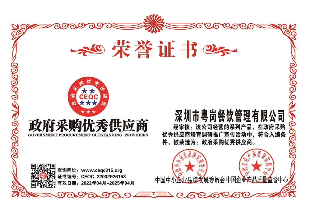 深圳市粵崗餐飲管理有限公司,是一家集蔬菜種植和農副產品配送為一體的專業型餐飲公司,主要為學校、工廠企事業機關單位提供蔬菜和農副產品配送服務。公司自成立以來始終以質優(yōu)價廉、服務至上為原則,嚴格按照ISO:9001國際標準體系進行管理。同時建立了行業領先的配送中心、大型冷庫和保鮮庫、檢測中心以及專業化的配送團隊,能長期安全、穩(wěn)定、準時的配送貨物。我們所有蔬菜均經過初步加工、無黃葉,無泥沙等雜質,利用率達97%以上...保障向用戶提供的各類食材的衛生和質量。公司為了適應不同客戶的需求,配有專業人員和配送車輛,實行“一對一”的服務體制,一心一意的為客戶服務,秉承粵崗誠實守信、服務第一、客戶至上的服務標準,真正讓客戶花最少的錢吃最好的菜。粵崗多年來何以欣欣向榮,因為我們知道只有勇于擔當責任,才能承擔更大的責任,就是因為 粵崗員工貫徹公司態(tài)度決定一切、細節(jié)決定成敗的真理,從質量抓起,從服務做起,才創造了如今的規(guī)模化供應、統一性配送、專業化服務的粵崗。